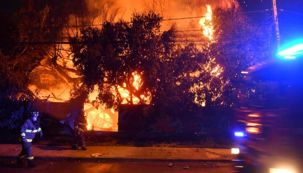 Carabineros también intervino contra los disturbios, utilizando el «guanaco» para dispersar a los manifestantes. No se ha reportado hasta el momento detenciones ni otros daños.