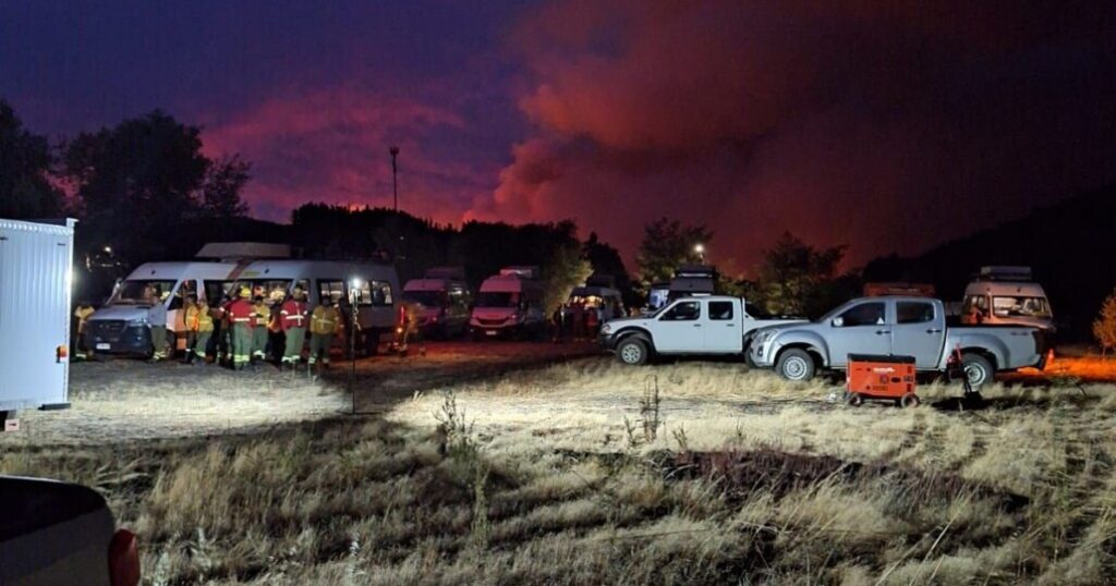 En el área están operando equipos del Ejército, Bomberos, CONAF, la municipalidad, Carabineros y unidades del SAMU, frente a un incendio que sigue fuera de control y cuyo avance aumenta con cada minuto que pasa.