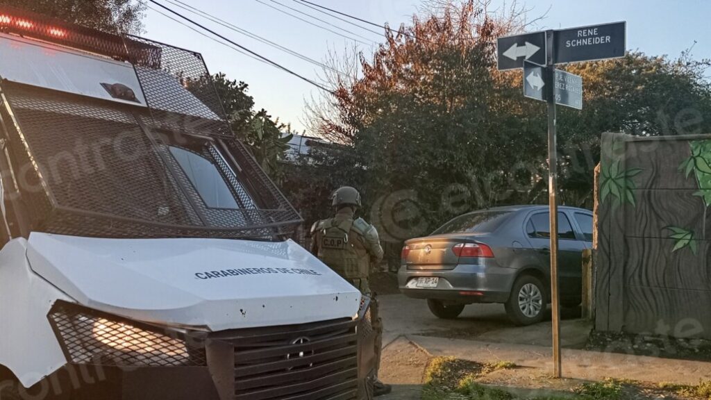 Alrededor de las 17:00 horas, el personal del OS7 de Carabineros, con el apoyo del GOPE, se dirigió al cruce de Vicente Pérez Rosales y René Schneider, en la población Escritores de Chile, zona de Paillihue, en la capital provincial de Biobío, para acceder a al menos tres viviendas.