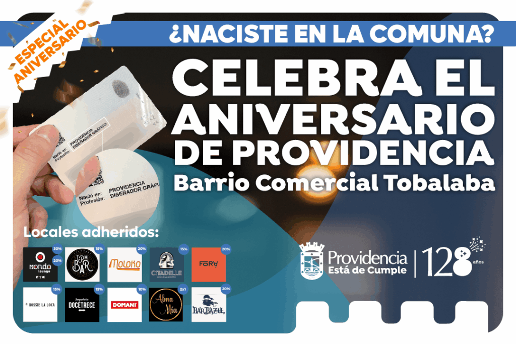Con motivo de su 128° aniversario, la Municipalidad de Providencia y la Asociación Gremial Barrio Tobalaba invitan a todos a participar en esta celebración gastronómica del 19 al 31 de mayo de 2025.