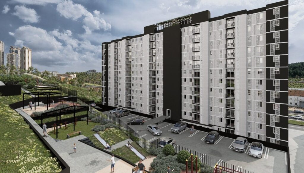 Los departamentos tienen un área que varía entre 58,84 m² y 62,12 m², y todos cuentan con tres dormitorios, un baño, cocina, sala de estar, comedor, logia y terraza.