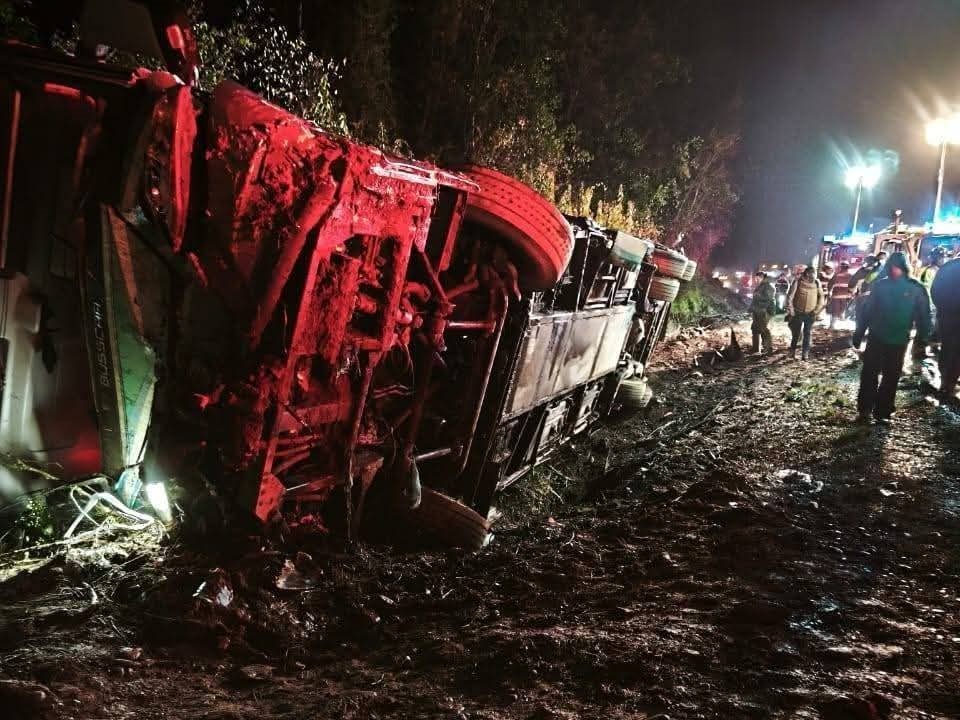 El incidente ocurrió poco después de las 5:00 de la mañana, cuando el conductor del vehículo, de la empresa Trasantin, perdió el control por razones que aún están siendo investigadas. Tras el volcamiento, los heridos fueron trasladados a diferentes centros médicos por parte de los equipos de emergencia.
