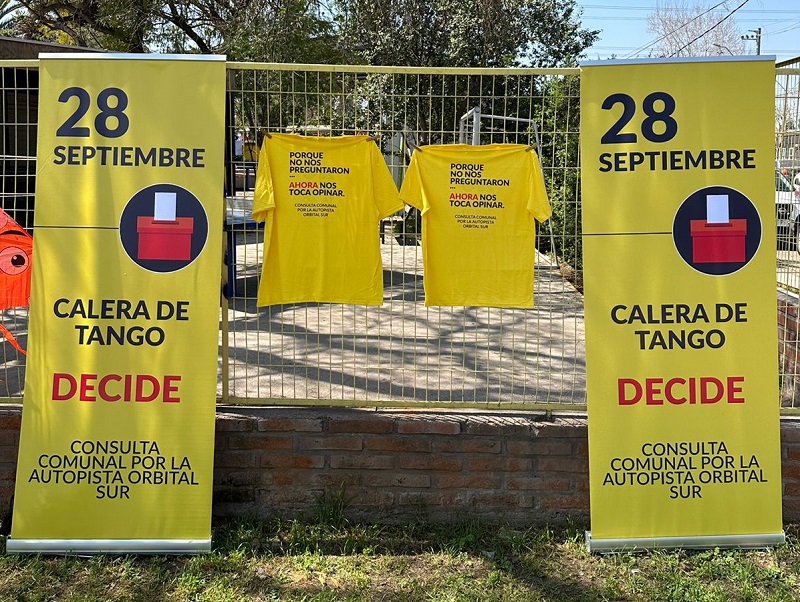CALERA DE TANGO.- Este domingo 28 de septiembre, la gente de Calera de Tango va a participar en una consulta comunal voluntaria sobre la futura construcción de la Autopista Orbital Sur Santiago. Con casi 20 mil votos disponibles, la comunidad tendrá que decidir si están a favor o en contra del proyecto.