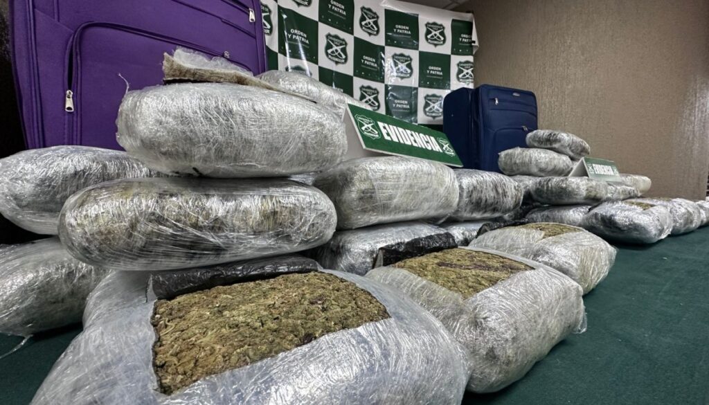 Carabineros del OS7 Valparaíso, en colaboración con el personal de la Tenencia Carreteras Hijuelas y asistidos por el can «Ginger», llevaron a cabo controles preventivos en las principales rutas de acceso a la región. Durante estas inspecciones, lograron identificar sustancias ilícitas en los equipajes de dos pasajeros que viajaban en un bus interprovincial en la ruta 5 Norte, específicamente en el kilómetro 126, en la comuna de Nogales.