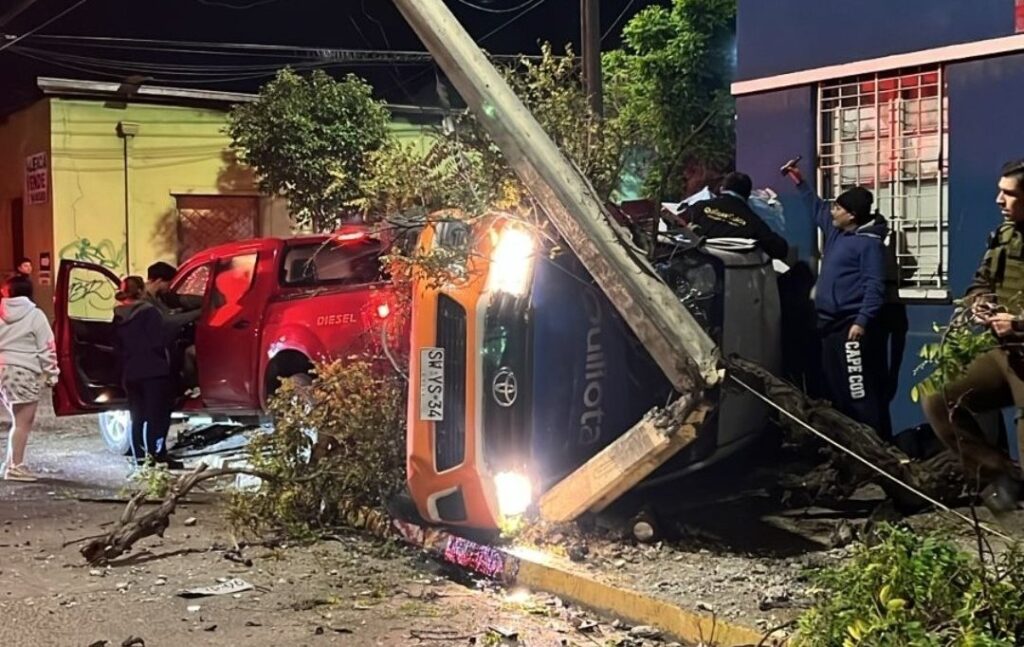 Uno de los vehículos involucrados pertenece a la Seguridad Ciudadana de Quillota y quedó volcado.