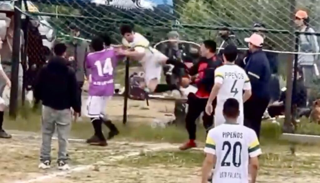 Una infracción en el área fue sancionada como penal por el árbitro, lo que llevó a una serie de empujones y agresiones, incluyendo una patada voladora de un jugador de Pipeños hacia el portero rival.