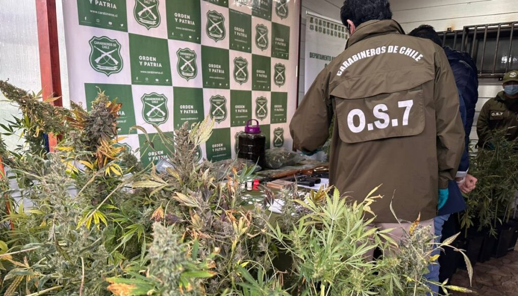Los agentes policiales intervinieron en propiedades situadas en las calles Caucau, Ingeniero Raúl Sáez, Gaspar de Ahumada y Coronel Santiago Bueras, en las poblaciones Guacamayo e Independencia, donde se incautó una significativa cantidad de sustancias ilegales, entre las cuales se encontraban 1 kilo 968 gramos de marihuana y 89 plantas de marihuana, así como armas de fuego y municiones, valoradas en 300 millones de pesos. También se decomisaron elementos para la dosificación de narcóticos, teléfonos móviles y dinero en efectivo.
