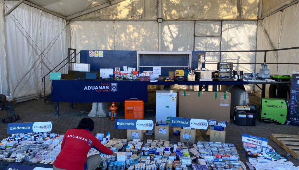 Aduanas en Valparaíso ha descubierto un significativo contrabando hacia Venezuela, valorado en US$35,000. Se trata de 236 encomiendas de medicamentos no autorizados, baterías de litio usadas, artículos tecnológicos, repuestos y otros productos ocultos en un contenedor.