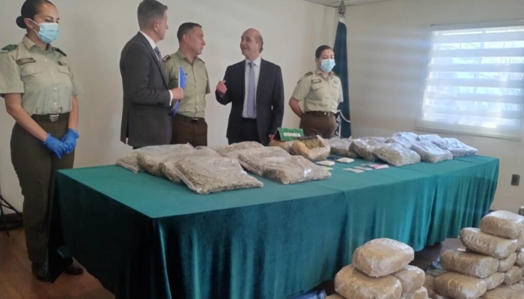 El coronel Mauricio Bascuñán, prefecto de Carabineros de Curicó, agregó que “el OS-7, en coordinación con personal de Carabineros de la zona, realizó un control vehicular y detectó un vehículo en tránsito. Al intentar el control, el vehículo se dio a la fuga, pero a dos kilómetros fue interceptado junto a los ocupantes. Se encontraron más de 100 paquetes de marihuana, 200 dosis de éxtasis y 200 dosis de ketamina, lo que equivale a un valor de más de 1069 millones de pesos”.