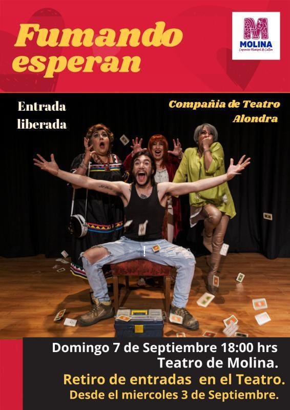 Este domingo 7 de septiembre a las 18:00 hrs., la Compañía de Teatro Alondra presenta la comedia “Fumando Esperan”, escrita por Santiago Mendoza, en el Teatro Municipal de Molina.