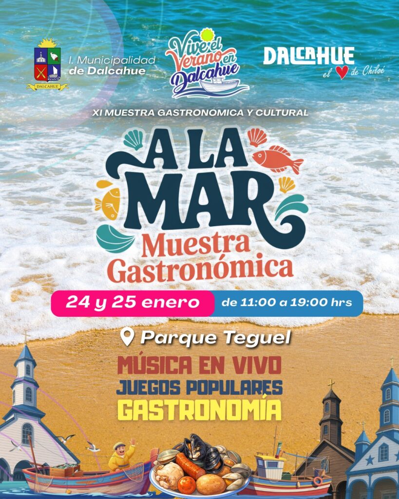 Con mariscos frescos, precios accesibles y una variedad de actividades culturales y recreativas, la comuna de Dalcahue se alista para la Muestra Gastronómica y Cultural «A la Mar», que se llevará a cabo los días sábado 24 y domingo 25 de enero, de 11:00 a 19:00 horas, en el Parque Municipal Teguel. Esta actividad, organizada por la municipalidad de Dalcahue dentro del programa Vive el Verano en Dalcahue, tiene como objetivo resaltar la pesca artesanal, el trabajo de las familias del mar y la gastronomía local, consolidando este evento tradicional como un espacio de identidad, desarrollo y turismo. La alcaldesa de Dalcahue, Alejandra Villegas, enfatizó la relevancia de esta muestra para la comunidad, destacando la labor de los pescadores: “La pesca artesanal es parte de nuestra historia y presente. Dalcahue alberga uno de los puertos pesqueros más destacados de la provincia de Chiloé, y este evento es una forma concreta de reconocer ese esfuerzo, apoyar a nuestras familias del mar y recibir a quienes nos visitan para que conozcan nuestra identidad y gastronomía”, comentó la alcaldesa.
