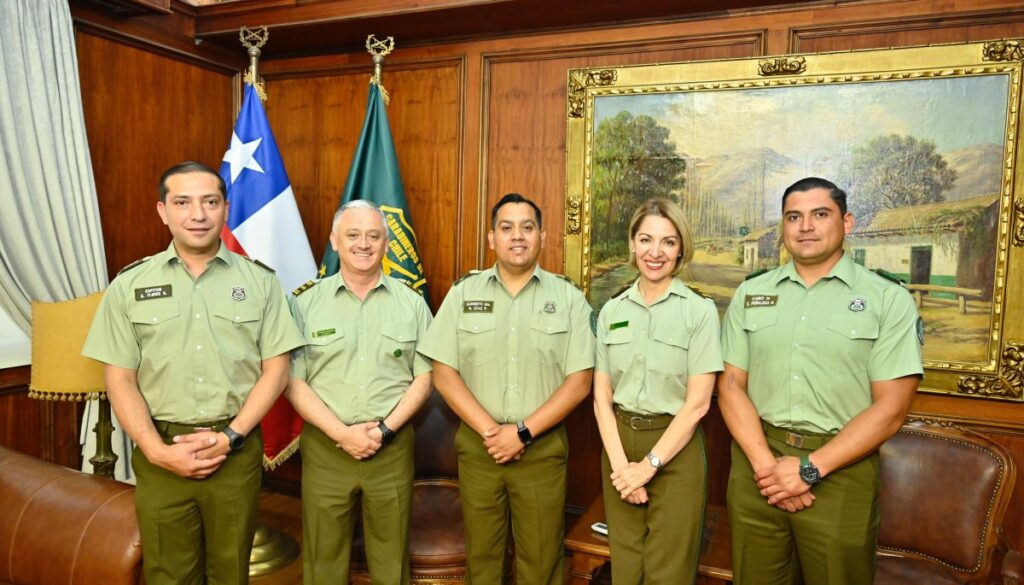 El sargento segundo Raúl Díaz Ponce y el cabo segundo Cristóbal Peñaloza Henríquez arribaron a la Dirección General de Carabineros en Santiago, junto a la Jefa de Zona Valparaíso, Patricia Vásquez.