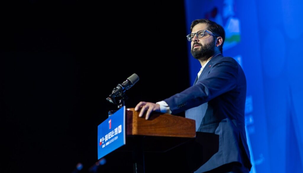 Este jueves 30 de octubre, durante la mañana en Corea del Sur, el Presidente Gabriel Boric inició sus actividades oficiales en Seúl al inaugurar el Seminario Empresarial Chile-Corea. Este evento reunió a representantes de ProChile, Invest Chile y la Asociación de Comercio Internacional de Corea (KITA), con el propósito de reforzar la relación comercial y económica entre ambas naciones.