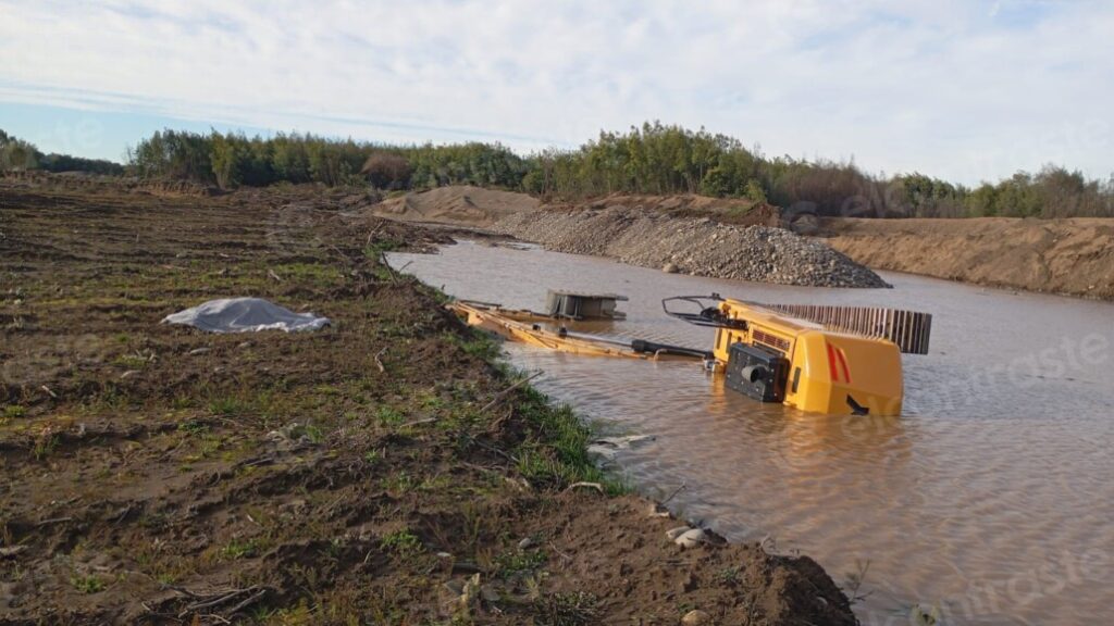 Los hechos ocurrieron el martes en la empresa Alcides Vidal, en la ruta Q-530. Durante las labores de extracción, cerca de La Suerte, un operario operando una excavadora volcó su maquinaria mientras removía material de construcción de una acumulación de agua.