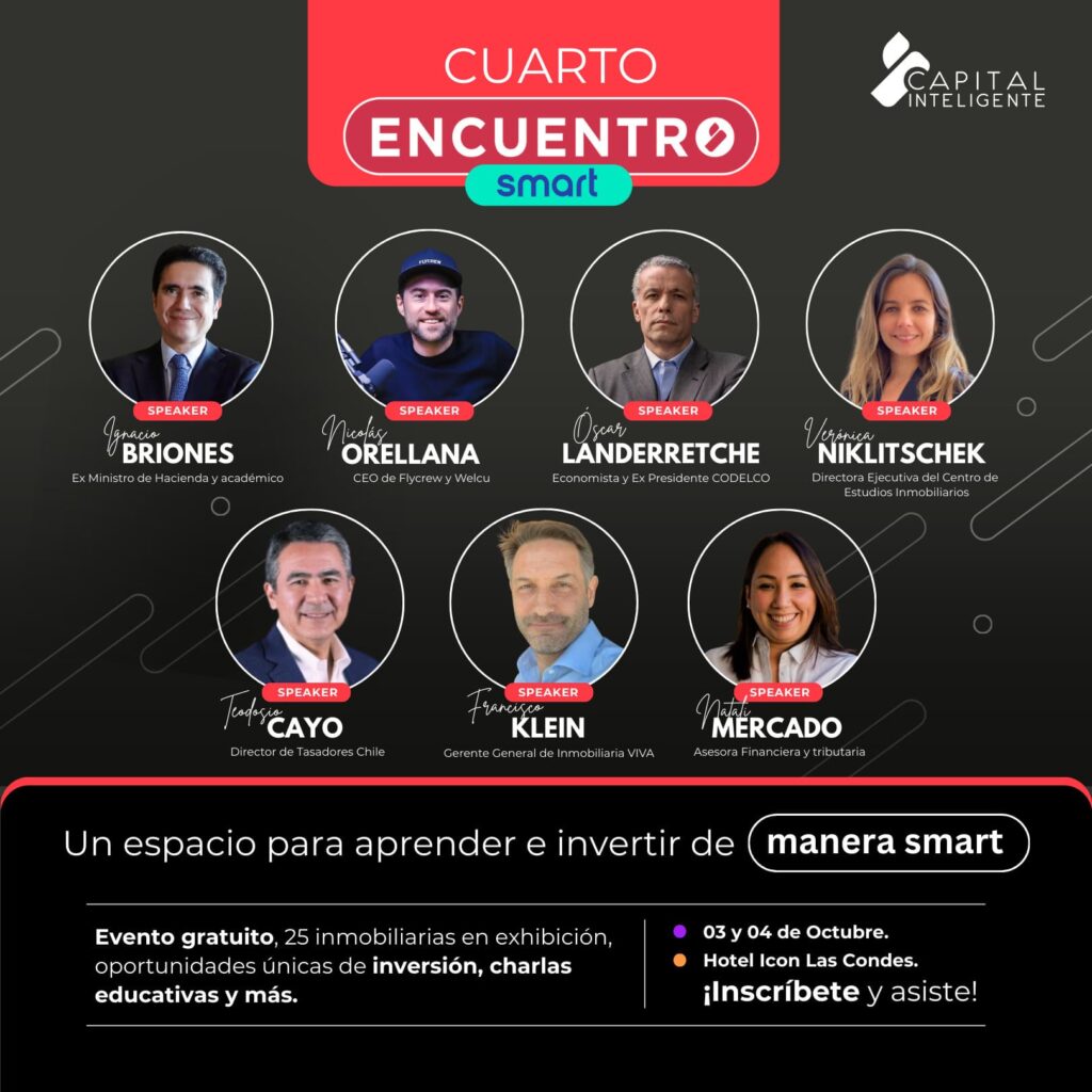 Con más de 9 mil viviendas al alcance y un 70% por debajo de las 4.000 UF, se llevará a cabo en Santiago el IV Encuentro Smart 2025, la feria de inversión inmobiliaria más grande de Chile. Organizada por Capital Inteligente, el evento se desarrollará el 3 y 4 de octubre en el Hotel Icon, con entrada gratuita, y tiene como objetivo acercar a la gente al mundo de la inversión inmobiliaria a través de educación financiera, asesorías y condiciones comerciales cool.