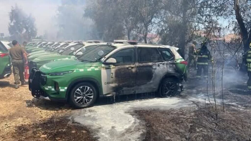 Este viernes por la tarde, un incendio de pastizales se extendió rápidamente hacia una estación policial, dañando varias patrullas en la Región Metropolitana.