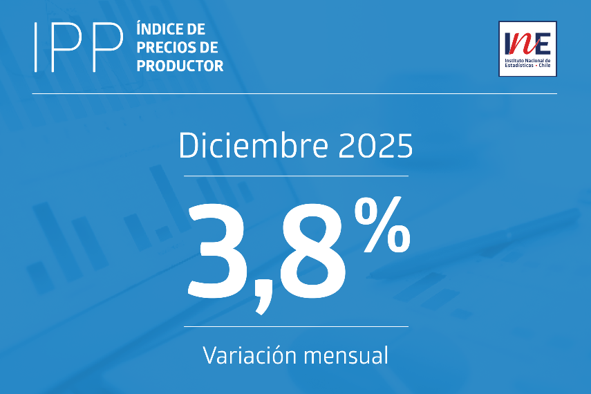 El Índice de Precios de Productor (IPP) de las industrias subió un 3,8% en diciembre de 2025, cerrando el año con un alza acumulada de 12,8%, según informó el Instituto Nacional de Estadísticas (INE), impulsado principalmente por el sector minero y la extracción y procesamiento de cobre.
