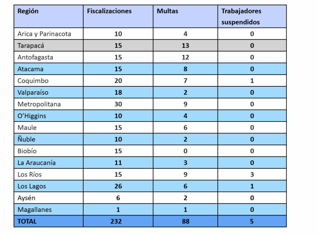 El director del Trabajo, Pablo Zenteno, destacó el beneficio dual de estas inspecciones: “Entre ayer y hoy se realizaron 232 fiscalizaciones en 16 regiones, aumentando tanto la cantidad de auditorías como el número y monto de las multas en comparación con la última campaña”.
