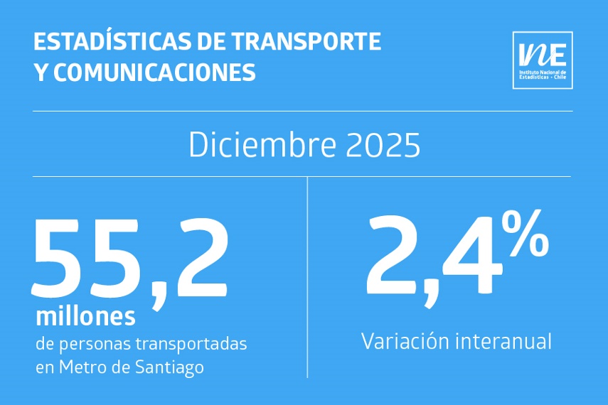 Durante diciembre de 2025, el Metro de Santiago llevó a 55,2 millones de pasajeros, lo que significa un aumento del 2,4% en comparación al año anterior, según el Boletín de Transporte y Comunicaciones del Instituto Nacional de Estadísticas (INE). Esto refleja una recuperación constante de la movilidad urbana en la capital.