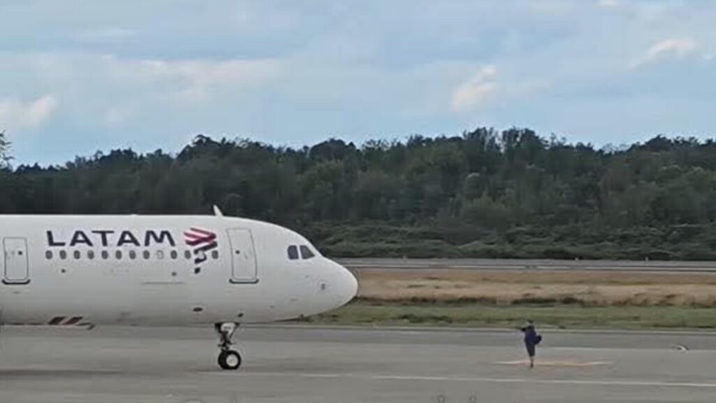 Los hechos ocurrieron la tarde del lunes, cuando un vuelo de LATAM Airlines estaba listo para partir de Puerto Montt hacia Concepción. En ese momento, un hombre ingresó inesperadamente a las pistas y corrió hacia el avión, bloqueando su despegue con su maleta en mano.