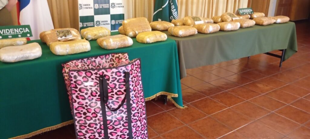 “Logramos arrestar a una pasajera del vehículo, quien llevaba en una maleta 32 kilos de marihuana, además de un bolso destinado para ello”, señaló el oficial, añadiendo que esta droga podría equivaler a más de 65 mil dosis y tiene un valor aproximado de $300 millones de pesos.