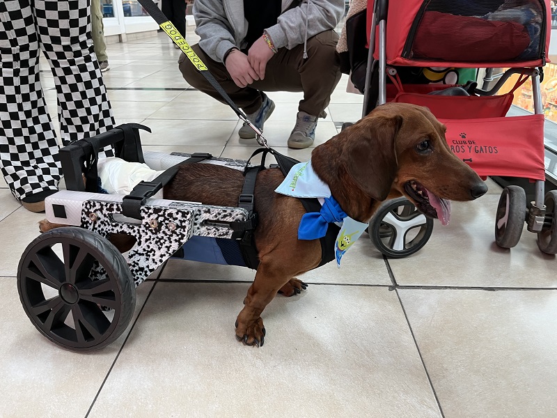 “Es un perrito salchicha que sufrió mielomalacia (una enfermedad que le ablanda la médula espinal) y tiene paralizado el tronco inferior. Pero gracias a la ayuda, no murió y ahora usa un carrito para moverse, evitando arrastrarse y hacerse heridas”.