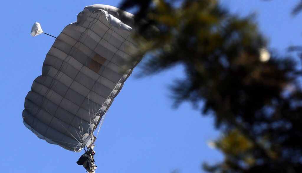 Este año, la ceremonia comenzará con un salto libre militar en honor al 60° aniversario de la Escuela de Paracaidistas y Fuerzas Especiales. Un total de 21 paracaidistas se lanzarán desde un avión CN-235 de la Brigada de Aviación del Ejército, descendiendo en formación frente a la tribuna de autoridades en una maniobra que deberá completarse en un tiempo máximo de 5 minutos y 40 segundos.