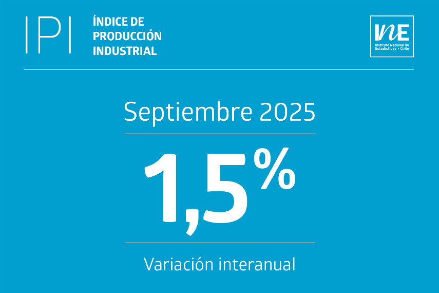 El Índice de Producción Industrial (IPI) mostró un aumento interanual de 1,5% en septiembre de 2025, gracias principalmente a la mayor actividad manufacturera y del sector electricidad, gas y agua, según datos del Instituto Nacional de Estadísticas (INE).