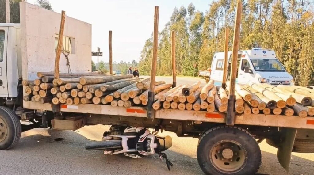 Un camión cargado de madera colisionó con una motocicleta en la ruta G-996, a la altura del cruce El Membrillo.