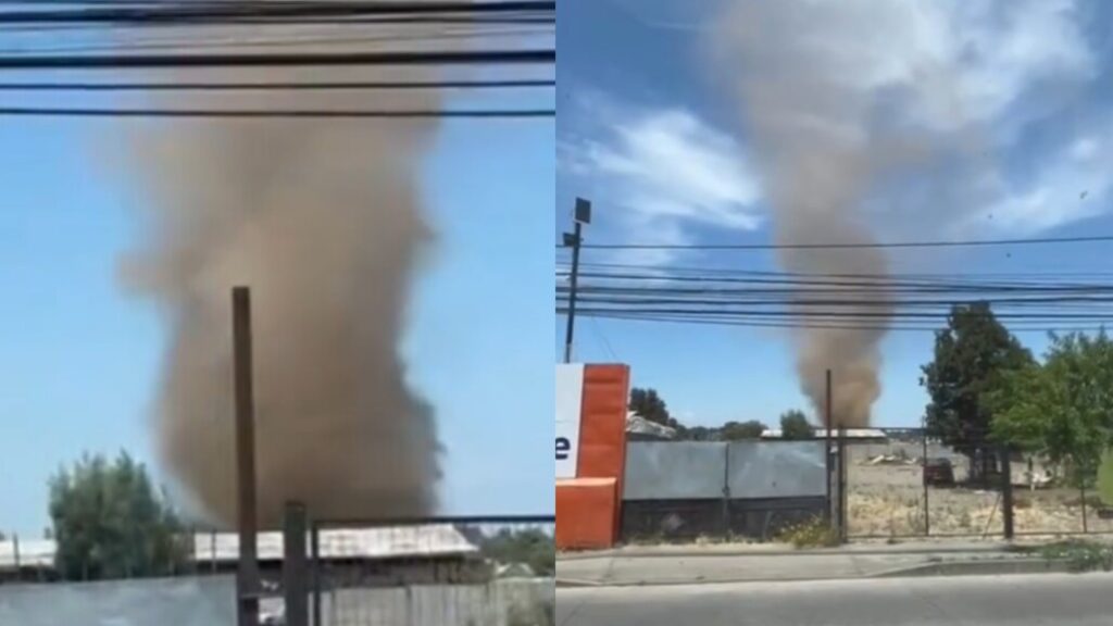 Allí, un torbellino de considerable tamaño levantó polvo y formó una figura cónica de aproximadamente 15 a 40 metros de altura, que duró varios segundos antes de desvanecerse.