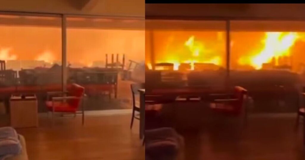 De acuerdo con lo compartido en las redes, esta pareja quedó atrapada en su hogar junto a su perro en Pacific Palisades, un exclusivo barrio residencial. Las imágenes muestran cómo las llamas rodean la vivienda y se propagan rápidamente debido al viento.