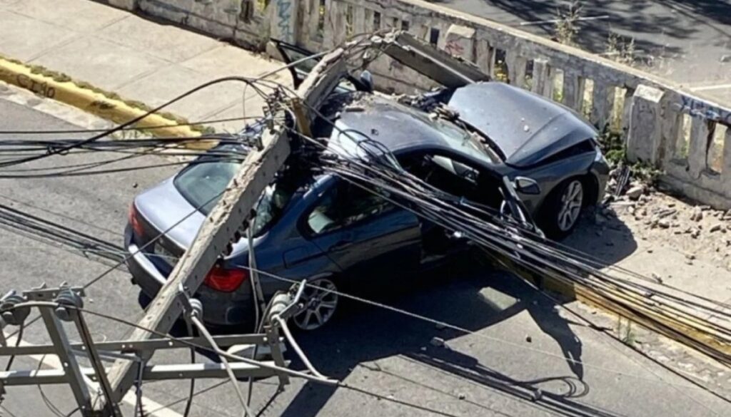 Un vehículo chocó y derribó varios postes del tendido eléctrico en la ciudad de Valparaíso durante la tarde de este jueves.