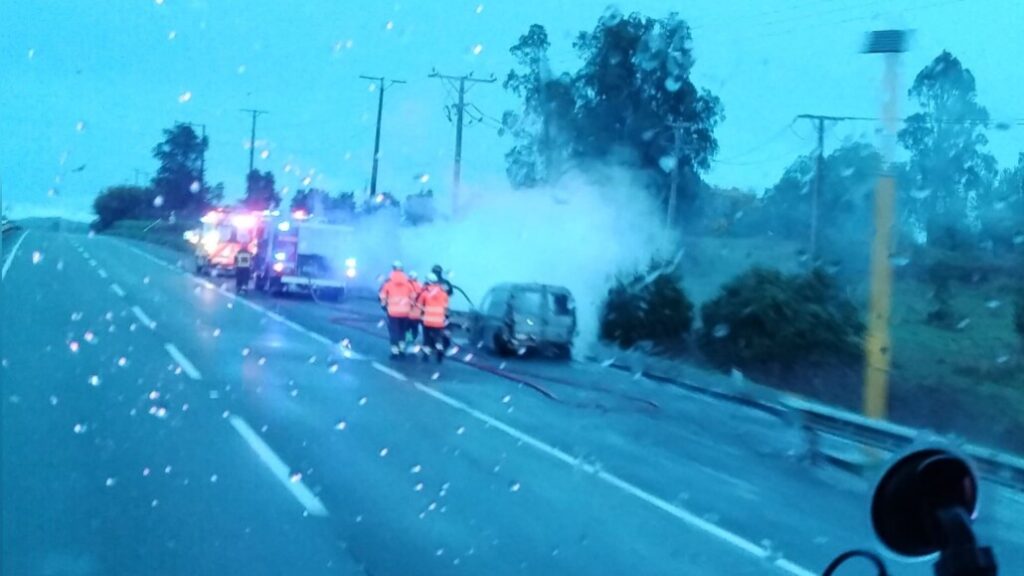 Alrededor de las 07:30 horas se recibió la alerta sobre un fuego en un furgón, a la altura del kilómetro 484, en el sector denominado Corte Lima, al norte de la capital provincial del Biobío. Voluntarios del Cuerpo de Bomberos acudieron al lugar rápidamente.
