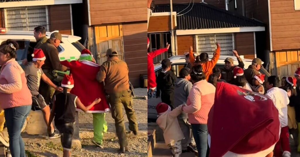 Este evento navideño en el sur de Chile mostró a los efectivos policiales llegando al lugar donde la comunidad se había reunido para realizar una importante misión: salvar la Navidad. El video, compartido en TikTok, muestra cómo un hombre disfrazado del famoso personaje que detesta esta festividad es capturado y llevado en una patrulla.